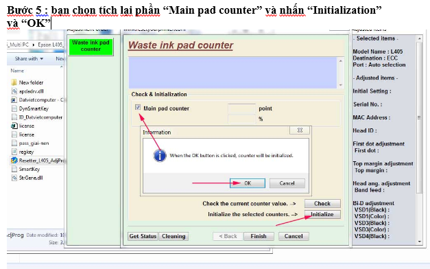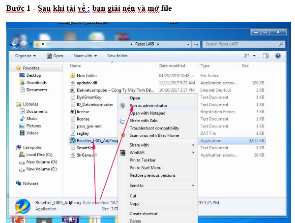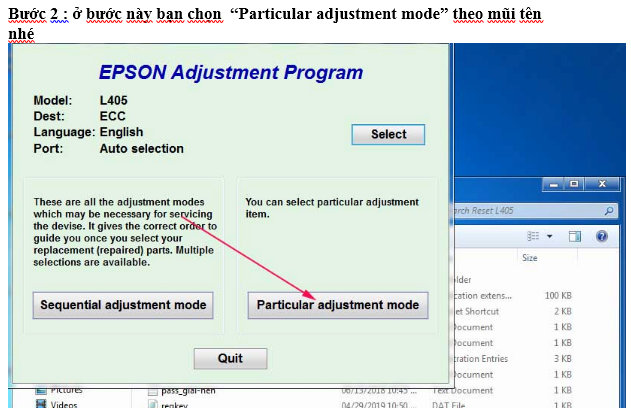 Sau khi có phần mềm reset máy in Epson L405 Bạn giải nén và làm theo các bước tương ứng với các hình ảnh dưới đây